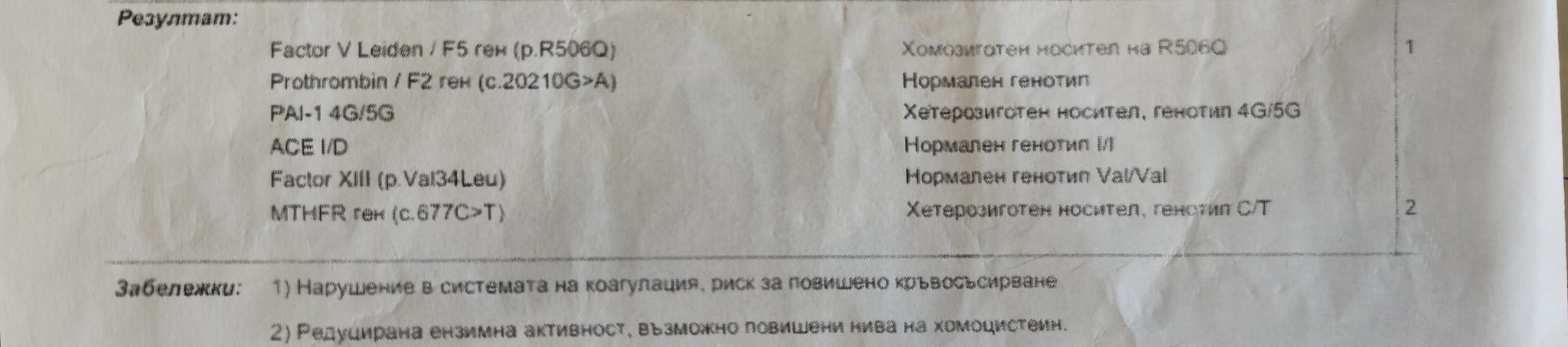 Мутацията ти е сериозна, но и Д-димер и фибриноген са ти на долна граница дори за небременни...