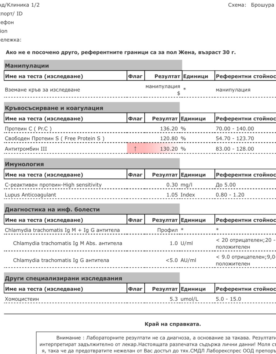 Както и обратното - кръвните показатели да са в норма, но да имате тромбофилия.