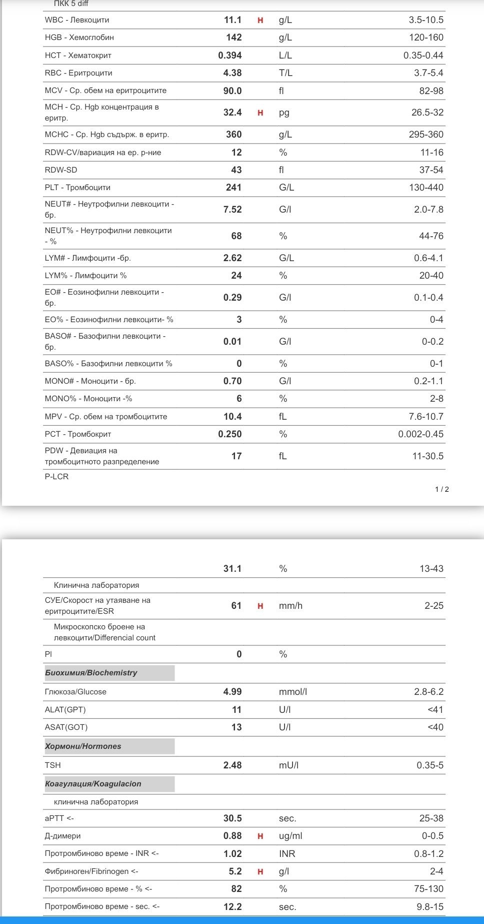 Момичета, може ли малко повече информация за изследването на анти-Ха? Консултирала съм се с двама хематолози, единият се води по изследванията на хемостаза (ПКК, фобриноген, аптт, д димер) и казва щом са ок да си продължа със същата доза на НМХ, а анти-Ха да изследвам след поне два месеца на една и съща доза, и то ако има някакви отклонения в другите изследвания. Другият хематлог ме накара веднага да пусна анти-Ха, видя, че стойността е ниска и иска да ми вдигне дозата и след седмица пак да пусна анти-Ха да видим дали няма да се наложи да я вдигне още. И сега съм пред дилема кого да послушам. Колко често е ок да се прави това изследване, доколко е показателно ако се прави по-често или пък по-рядко от необходимото? Възможно ли е другите кръвни изследвания да са ок, а анти-Ха да не е? Много ми е притеснено с този НМХ, особено като кажат, че искат да вдигат дозата. А аз съм с много много ниско рискови мутации, но пък с предходни два аборта и две биохимични бременности, заради които хематолозите си държат да правя профилактика с НМХ.