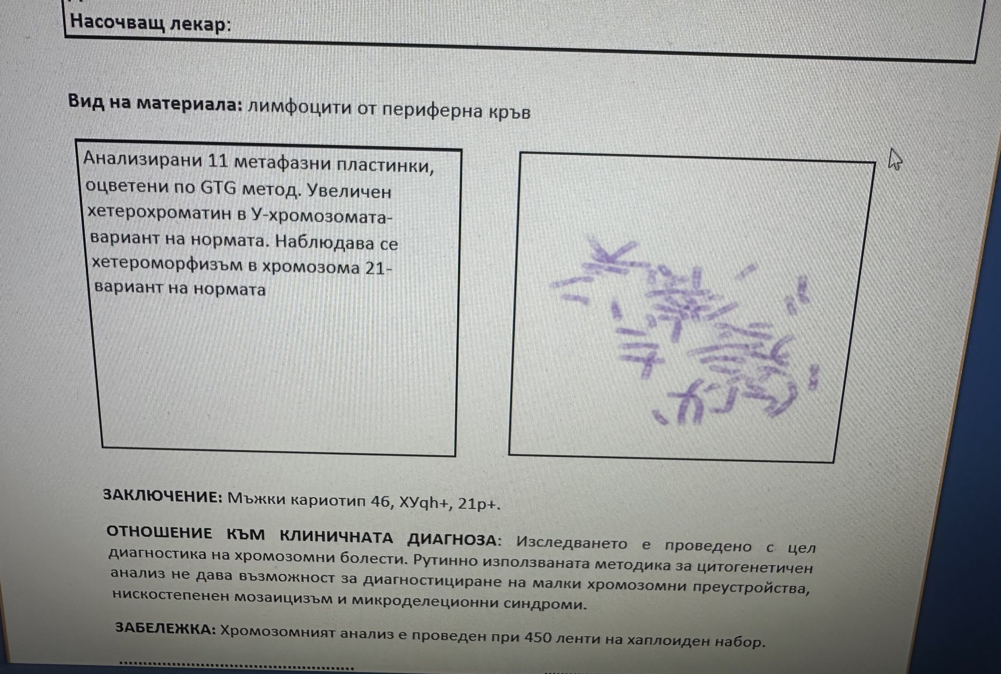 И аз имам питане.Някой на ясно ли е с тези изменения в кариотипа, какво точни значат?