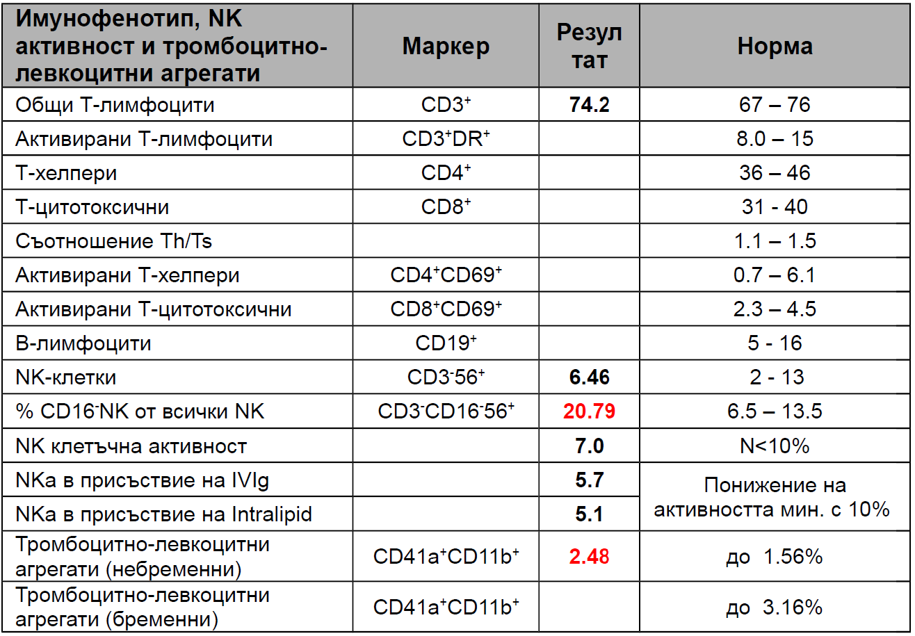 Още нещо. Важните са не общите НК клетки, а маточните. При теб не виждам такова изследване изобщо.