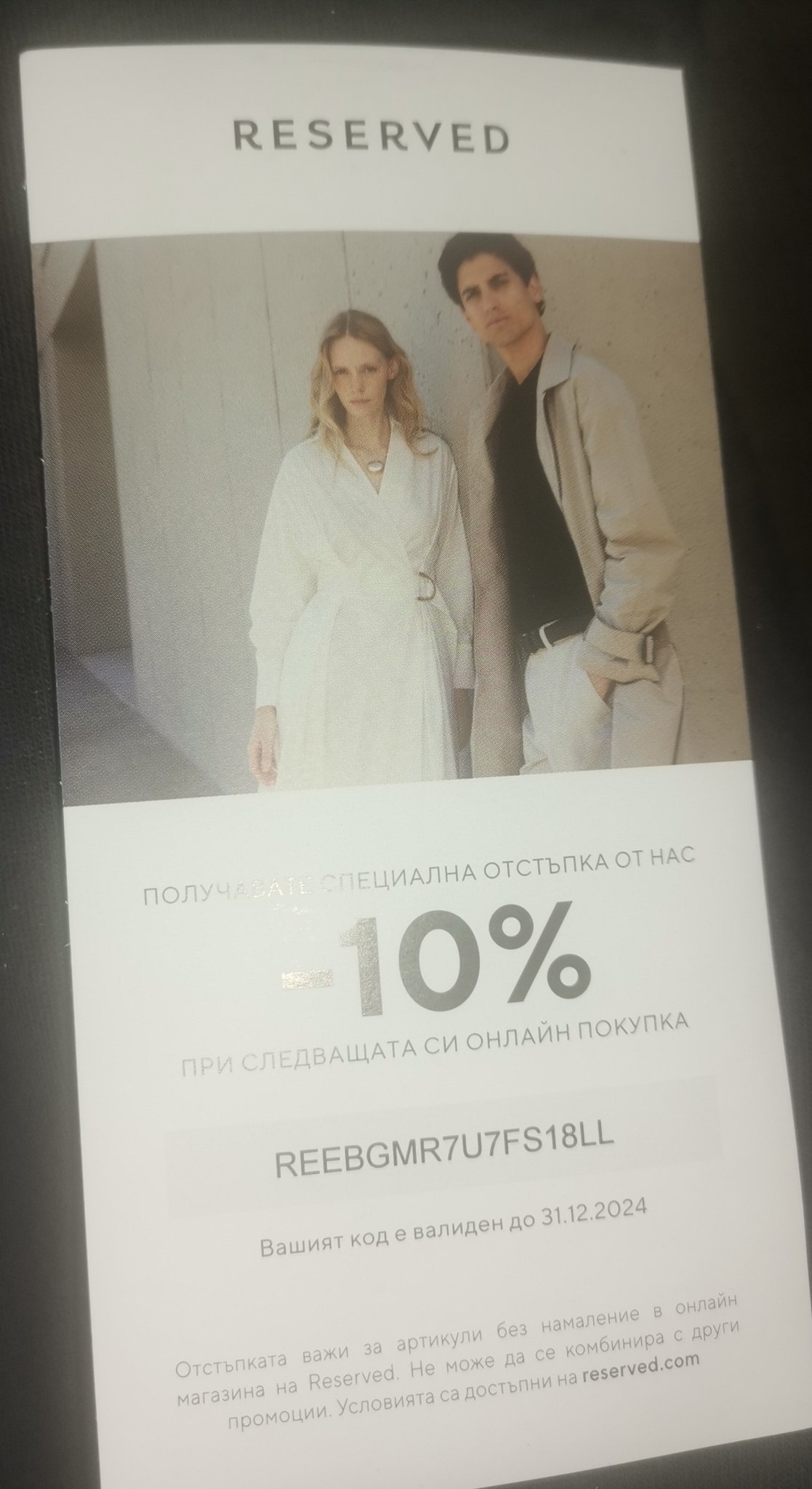 Имам код за 10% за Reserved. Ако някой има нужда да ми пише.