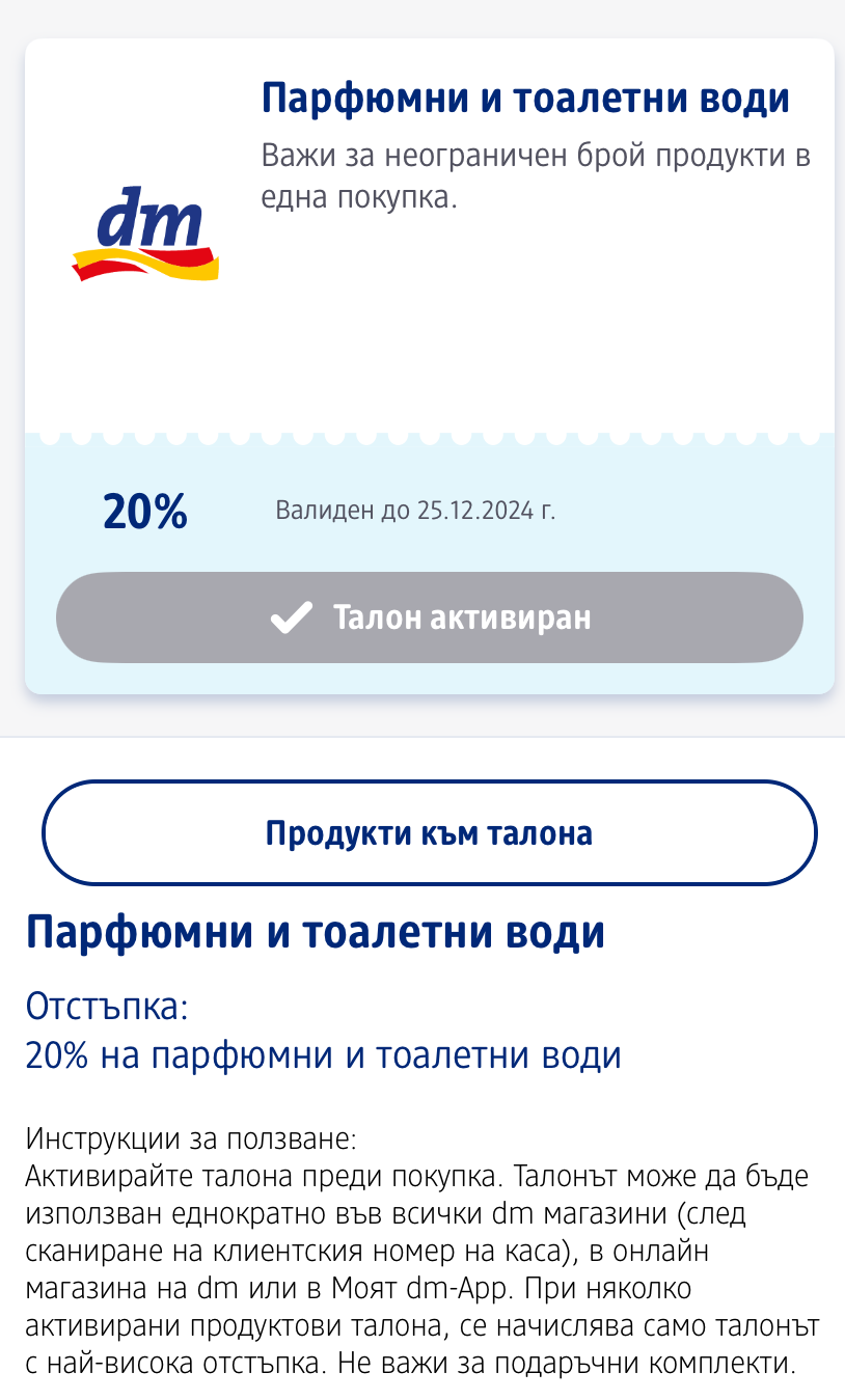 Имам талончета на ДМ,които за съжление няма да мога да използвам,надявам се да влязат в употреба на някой…