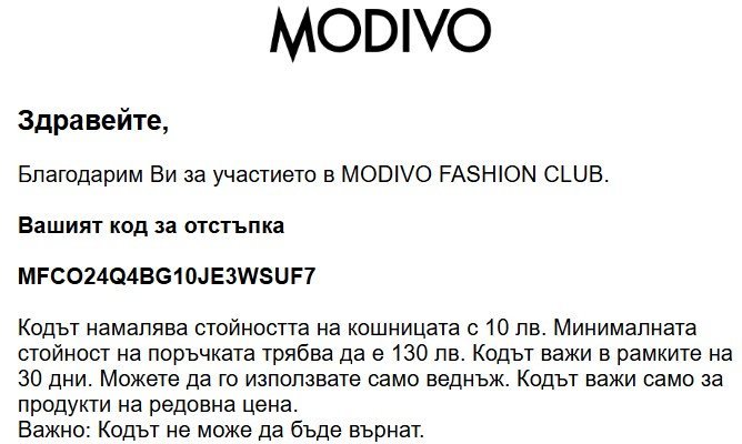 Моля за код за Модиво. Благодаря