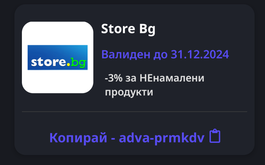 Моля за код за store.bg