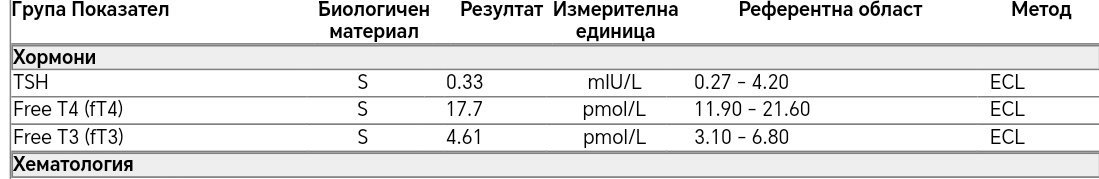 Само за сравнение - аз още съм в хипо, въпреки че от месеци тестовете сочат TSH - 0.