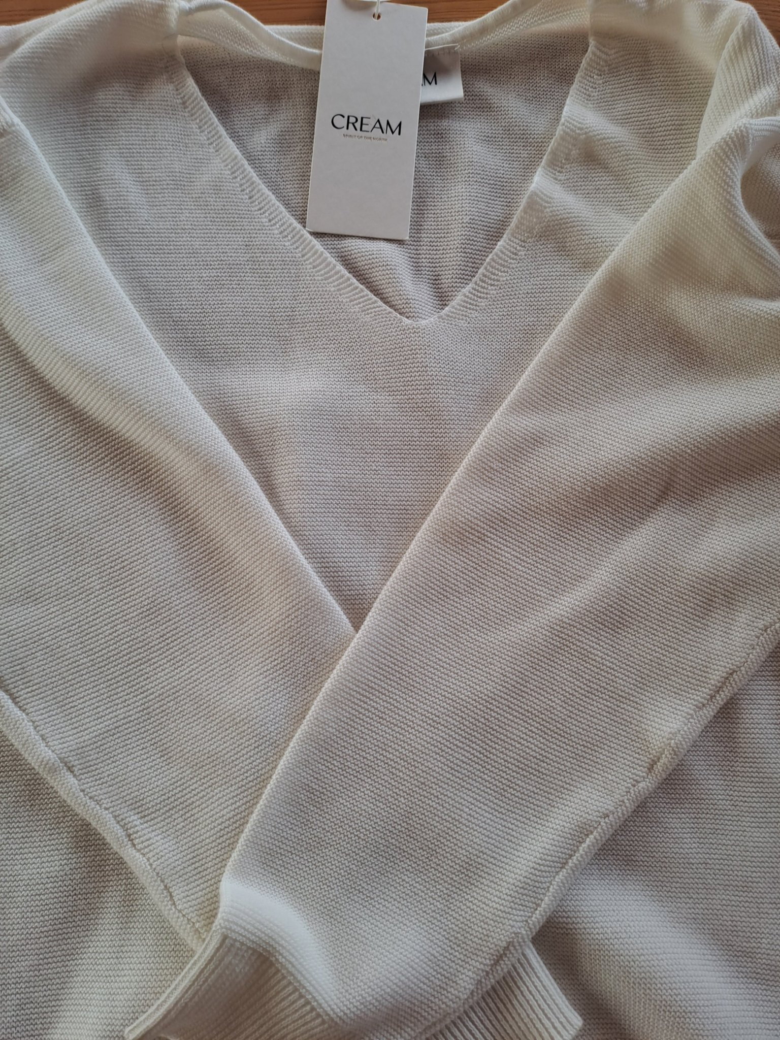 Много красив пуловер,екрю.Мекичък и широчък(щеше да ми е добре и номер надолу).S за 39лв: