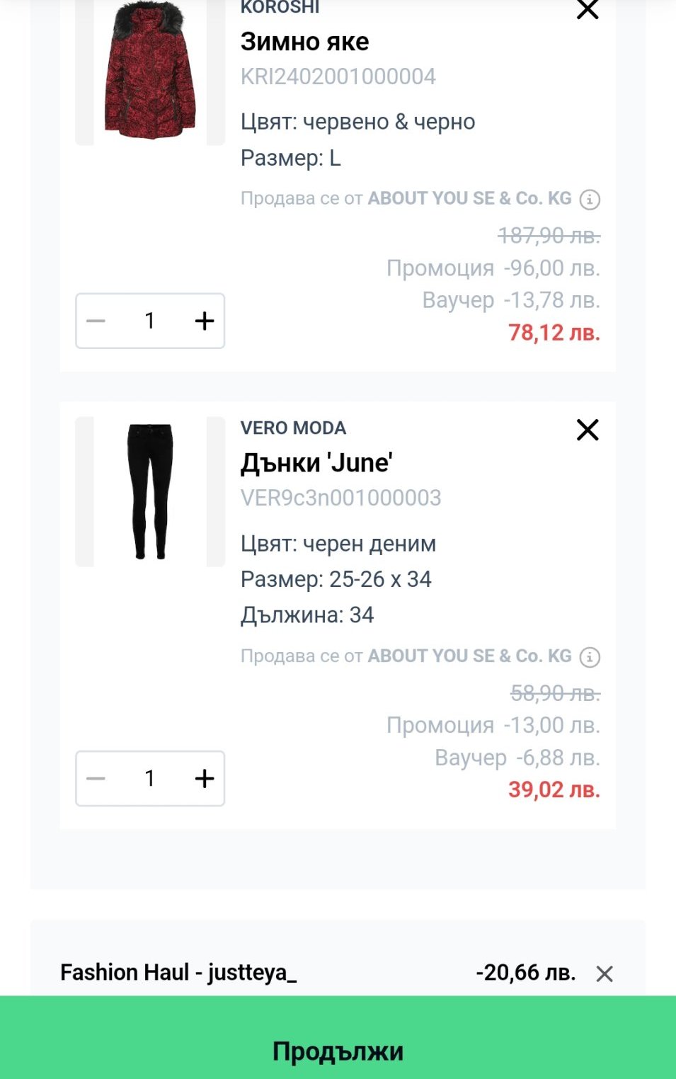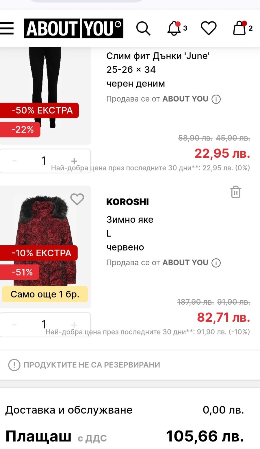 Защо след добавен код цената на тия дънки става по-висока? И на цялата поръчка, съответно? Абсурдно е.
