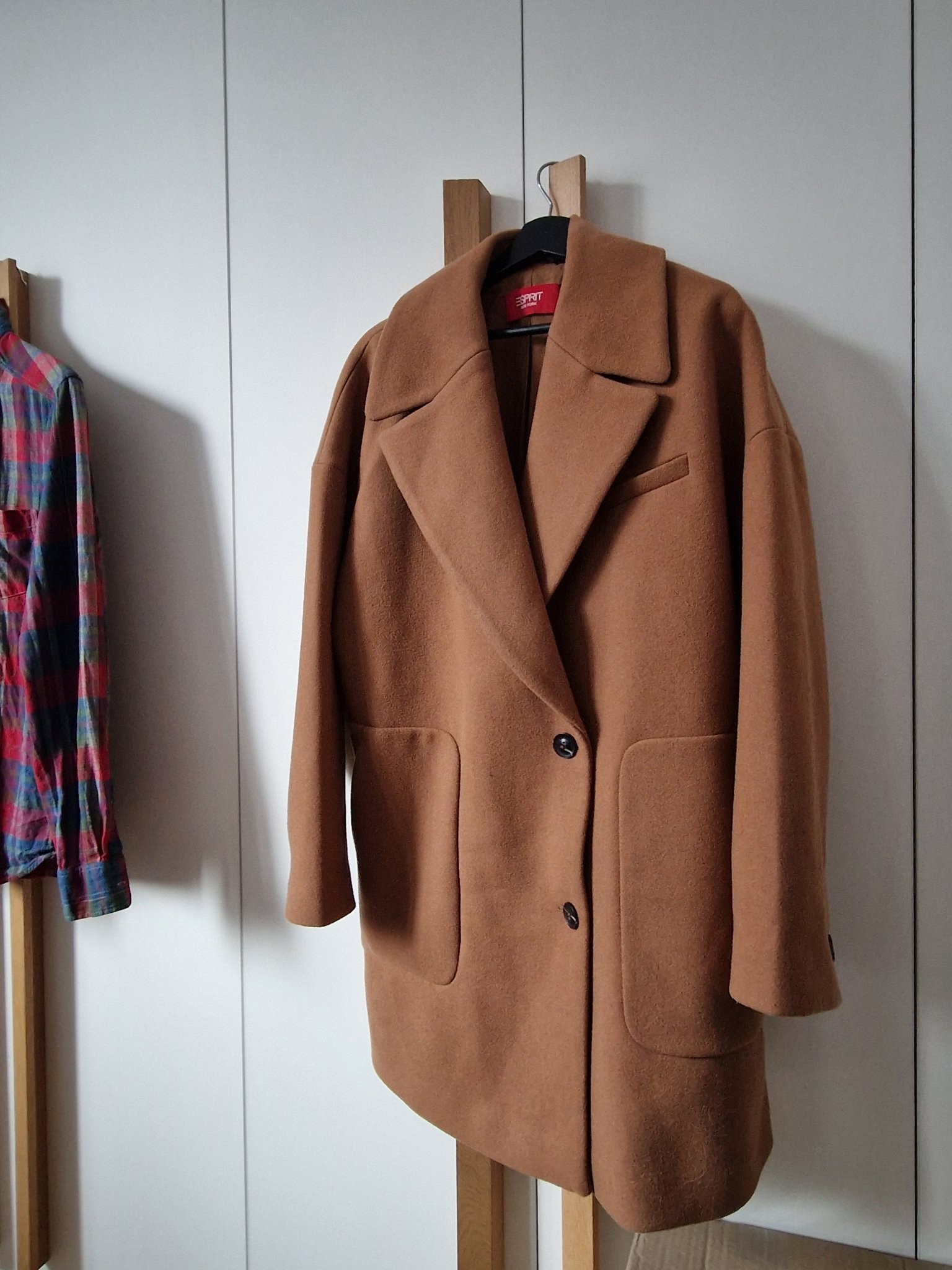 Не е последен писък на модата, но е напълно в стила ми. Оувърсайз и тип халат не харесвам и не нося. Вълната е 60%, закопчава се с цип и скрити копчета.