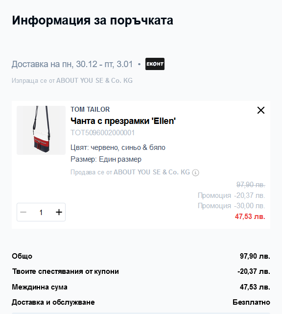 При мен хваща кода, но трябва да е само този продукт в кошницата