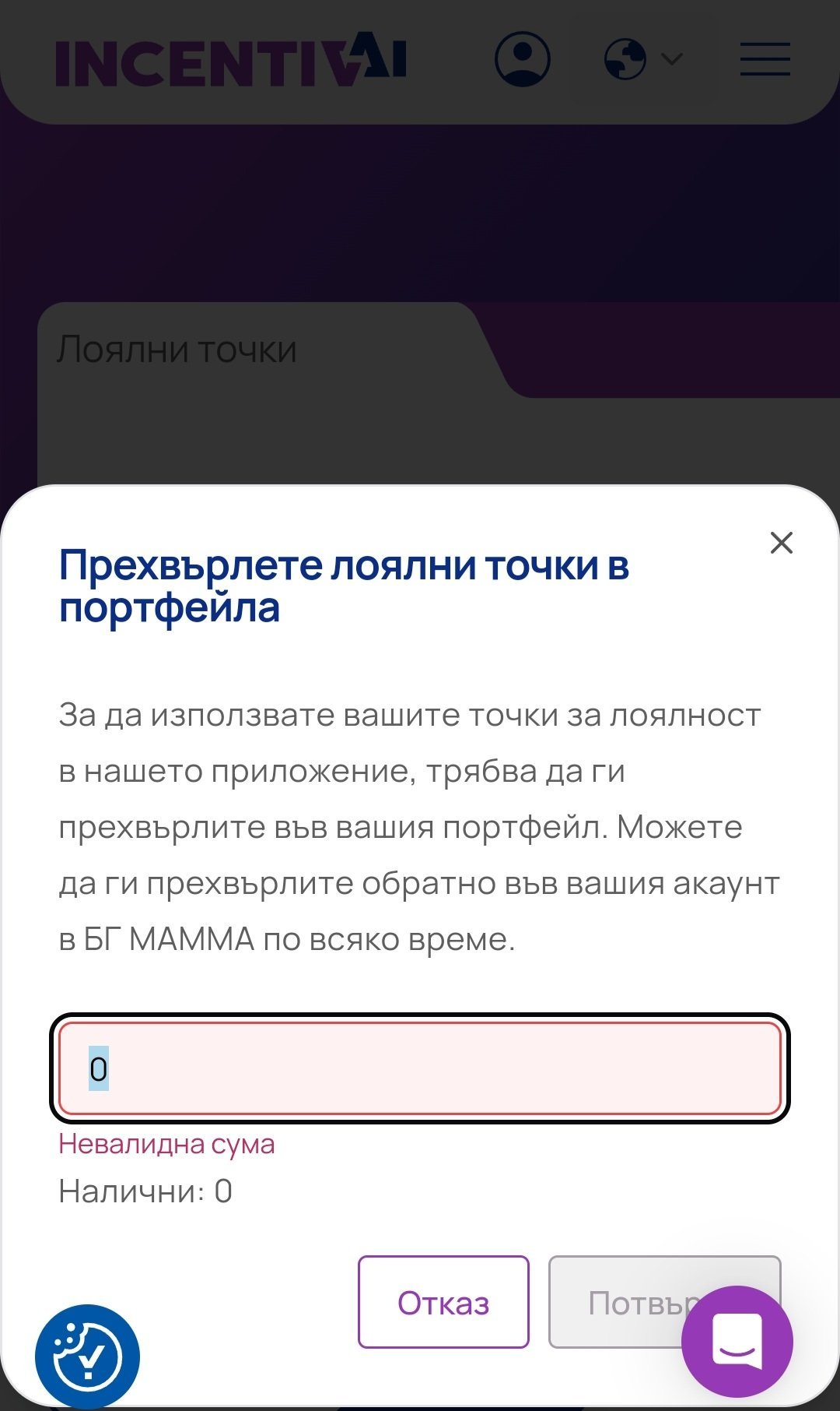 Здравейте, имам въпрос и аз. Вчера си прехвърлих част от точките и ги използвах за ваучер от Озон. Имам останали още някакви точки, които днес реших да прехвърля, за да не ги загубя, но ми изписва това: