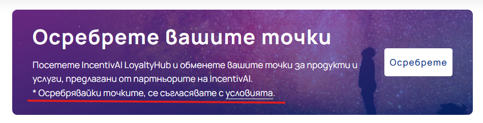 Осребрявайки точките си, вие би следвало да сте прочели и приели общите условия.