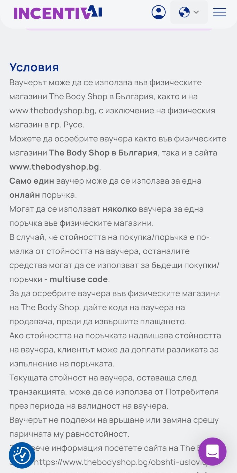 Здравейте! Знаете ли защо не ми позволява да използвам кода от Боди шоп? Не откривам допълнителни условия за пазаруване?