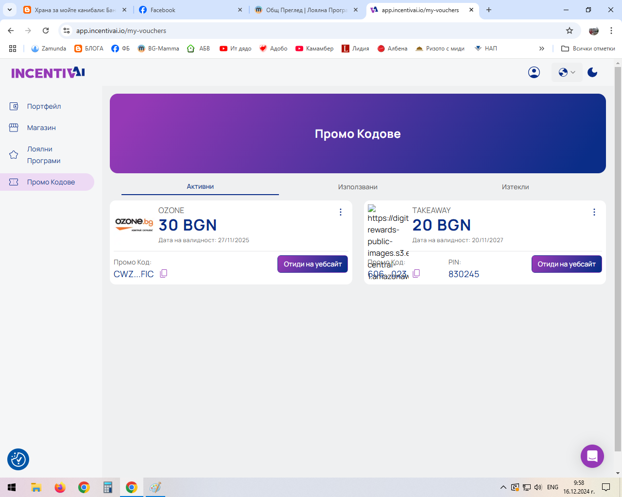 И потребителите нека не бързат да купуват ваучери, а да осмислят какво им трябва и тогава да ги генерират.Точките в платформата на Инсендия нямат давност.(поне засега):