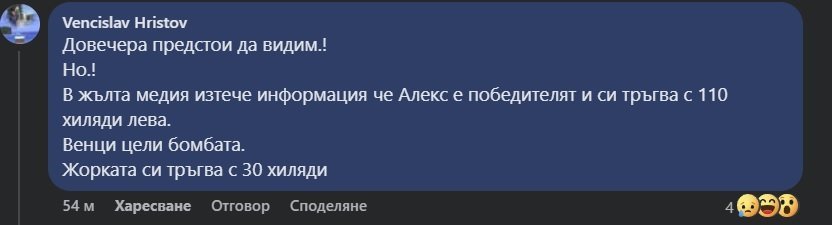 Но пак отбелязвам: това беше просто пост от една от ФБ групите. Не претендирам за достоверност, защото няма от къде да го потвърдя това. "Спойлерджията" ми за гривните много рано изгоря със много грешки в прогнозите си Joy