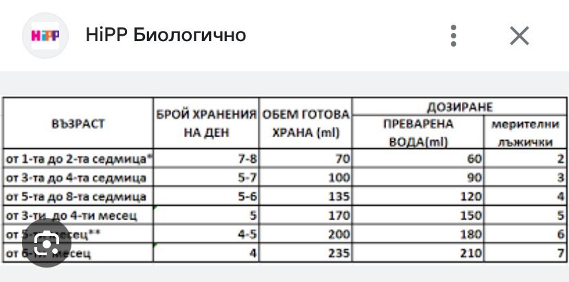 Мамите които хранят с хип, спазвате ли каквото пише на таблицата или давате колкото мл трябва да яде бебето? Моето е на 5 седмици( във 2месвц)  и попринцип знам че трябва да яде по 120мл, а според таблицата на АМ трябва да яде по 135мл