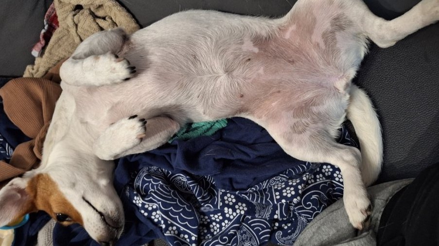 Първите дни у дома след стационара на Лъки той се окопити и взе да щурее. Тепърва се опознавахме още. Един ден гледам бялата му козина по корема станала розова. Викам си това пък куче къде е лежало и се е търкаляло, че да се омаже в нежно розово. Врътвам го по гръб, той с кеф разперва лапи и чака чесане, а аз ровя ли ровя по корема, за да видя изцапаното. Пък то козинката му толкова бяла, че чак му прозира розовото коремче 🤣😂🤣😂❤️