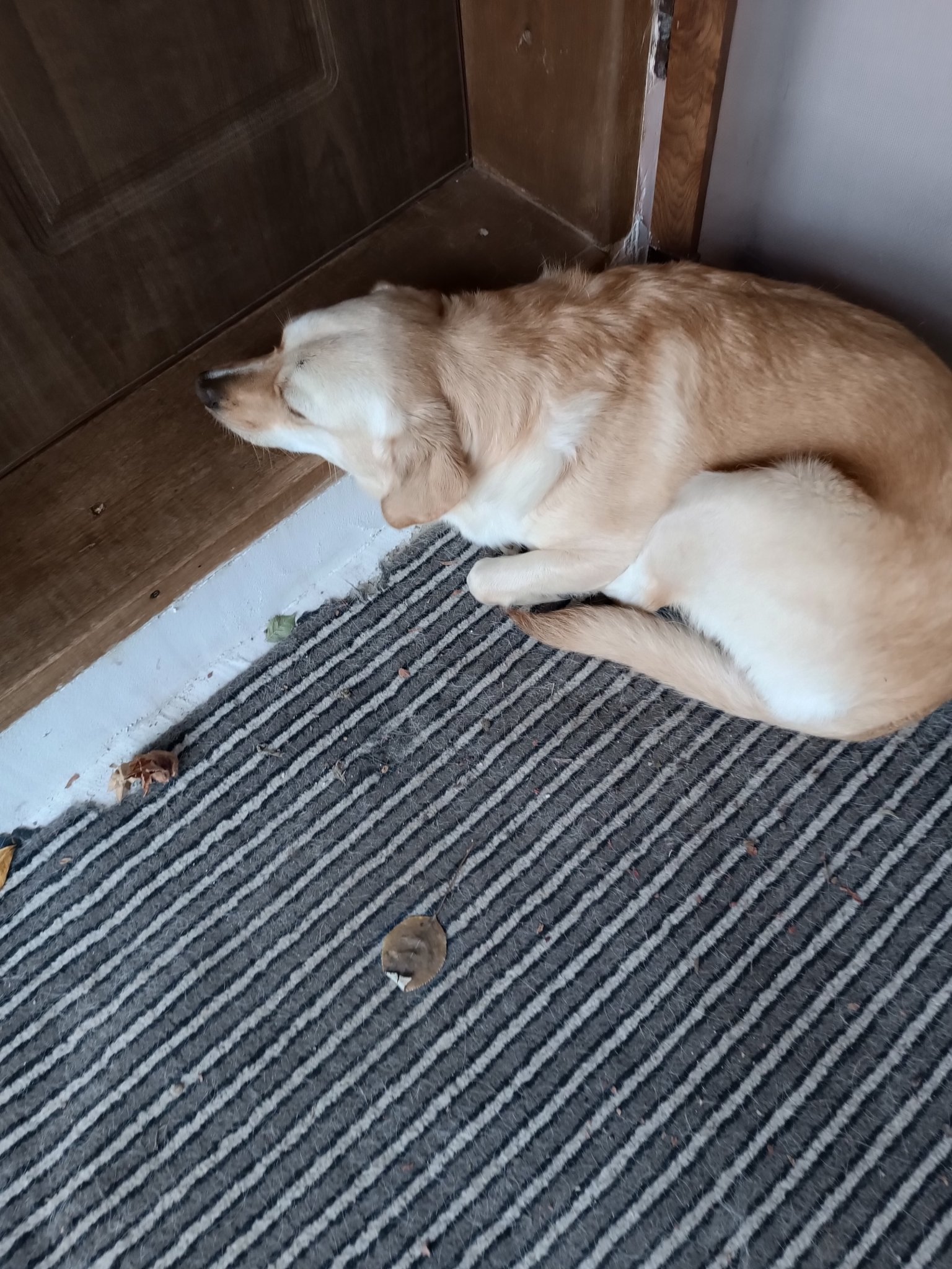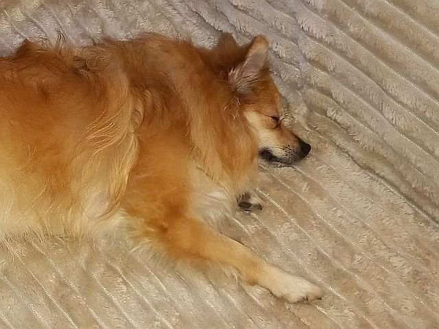Е, заведох я да потича след топката, получи наградка за добро поведение, после се прибрахме, михме кални лапи и сега, най-после, настъпи мир. Ще подремне, после ще стане да хапне и ... ще ми домъкне играчките си да си играем.