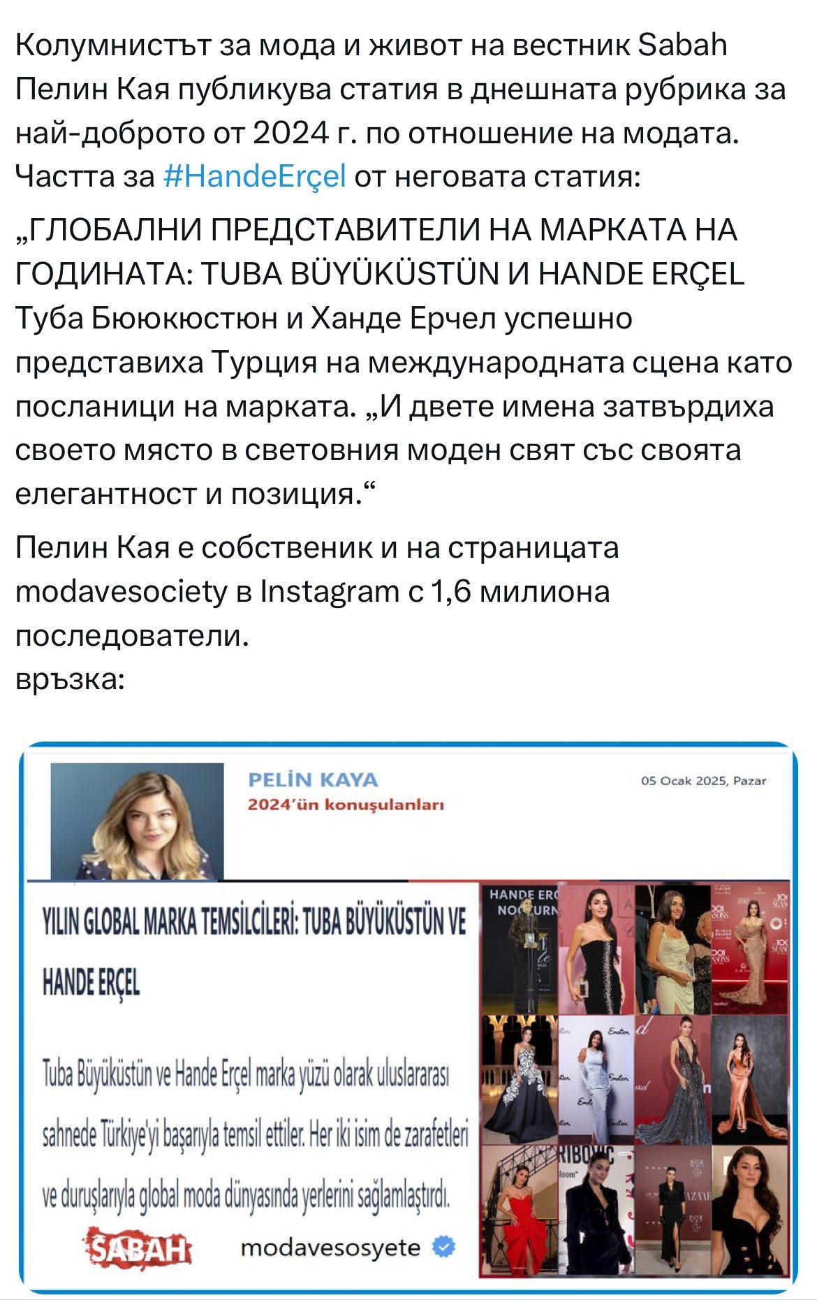 Ахмет Ватан, сценаристът на сериала Aşkı Hatırla / Reminder, говори за това как енергията на Ханде Ерчел съответства на характера на Гюнеш в програма, която посети. ☀️ За Ханде: „Тя е много топла, много искрена, много трудолюбива... Невероятно трудолюбива. Можем да кажем, че тя е най-трудолюбивият човек на снимачната площадка. Тя идва с бележките си, опитва се да разбере характера, обсъжда всяка реплика с вас. Тя обичаше характера на Гюнеш, тя е жив герой. И това беше начинът, по който можехме да видим тази страна на Ханде." каза той.