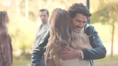 Серкан: Затвори очи. Обърни се към мен, затвори очи. Дишай. Успокой се. Погледни ме, погледни ме в очите. Погледни ме. Спомни си онзи ден в самолета. Спомни си нас. Погледни ме. Ела. Спомни си за нас. Ела, ела. Спомни си за нас. Успокой се. Вдишай, издишай. Поеми си въздух. Добре ли си? Ела тук. Добре ли си? Успокой се.