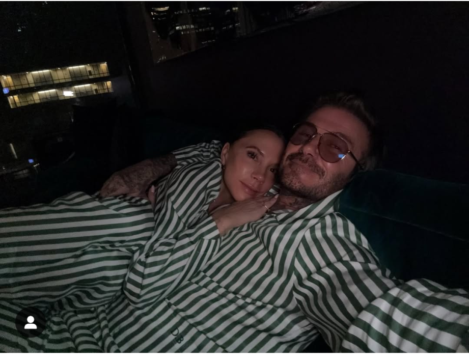 Едни Бекъм, техните пижами поне малко различен от коледния принт