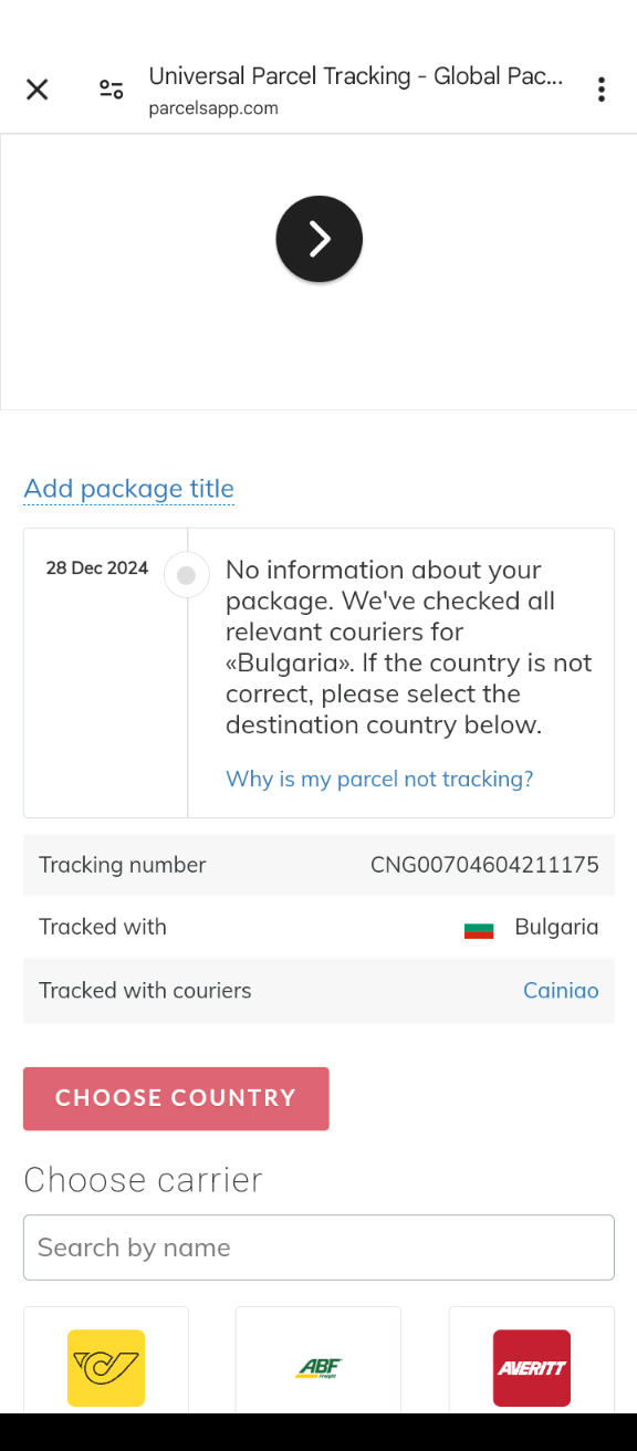 Намерих е самата поръчка в приложението тракинг номер, но не ми дава нищо за него