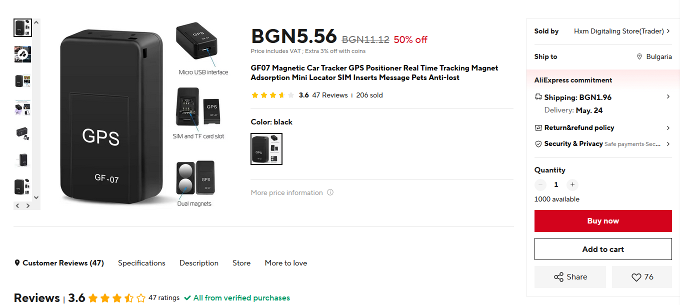 Не е задължително да е лошо след като е LBS, точността ще е към 60м. радиус но в повечето ситуации това е достатъчно. За GPS тракер ще трябва да приготвиш 60 лева.