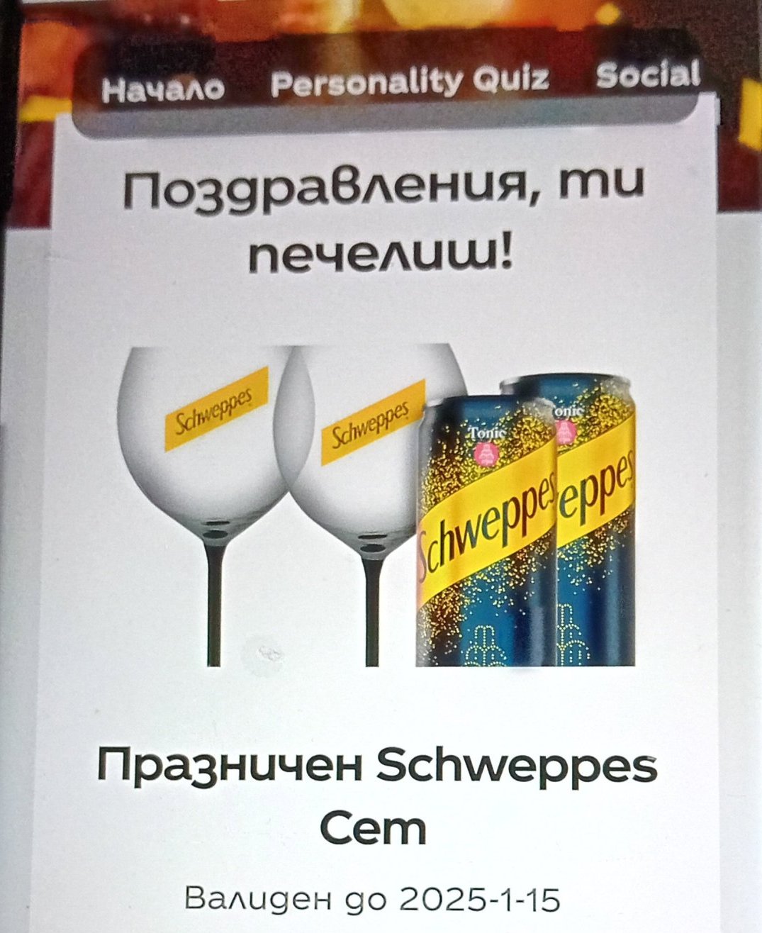 Вече не вярвах, че ще спечеля нещо от прословути календари, Швепс и т.н.