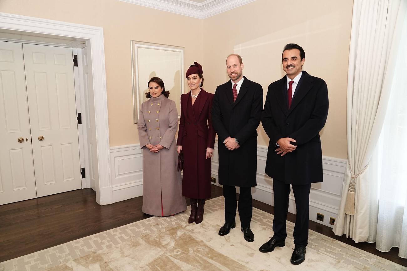 Принцът и принцесата на Уелс поздравяват амира на Катар и шейха Джавахер.
