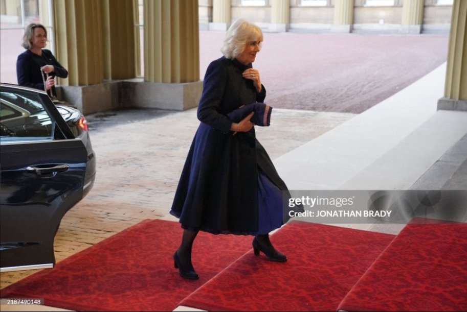 Ето я и Камила, пристигаща в Бъкингам, за официалния обяд, на който ще присъства и Катрин. Обядът е частен и не публикуват снимки.