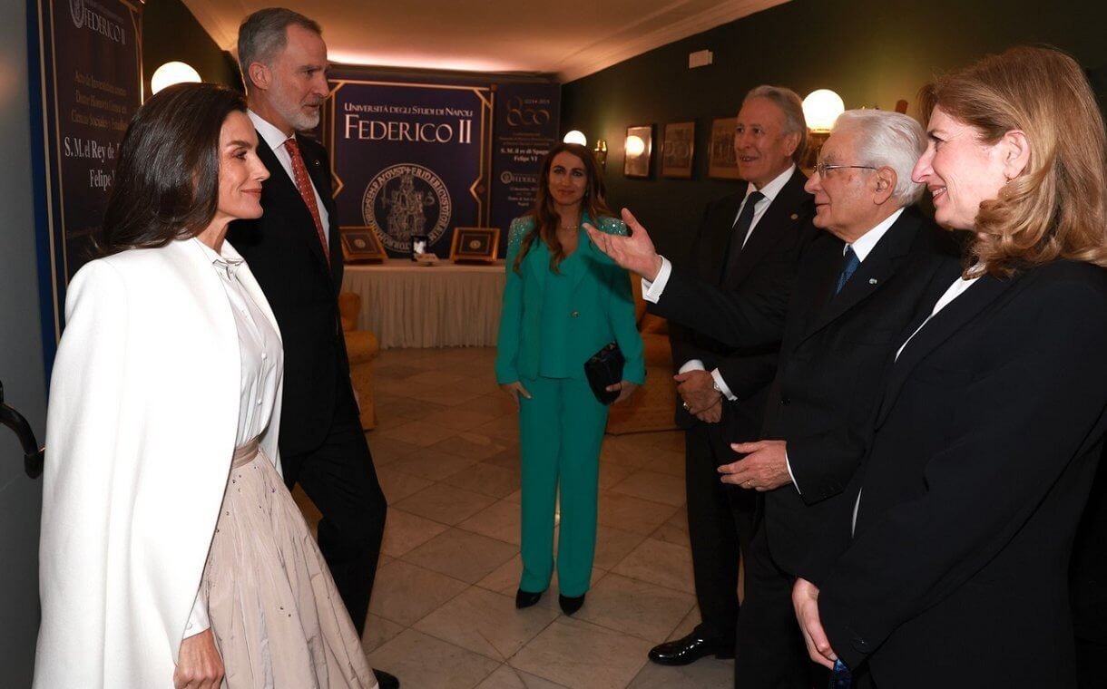 Не виждам проблем и със сакото на Летисия, поне така наметнато.