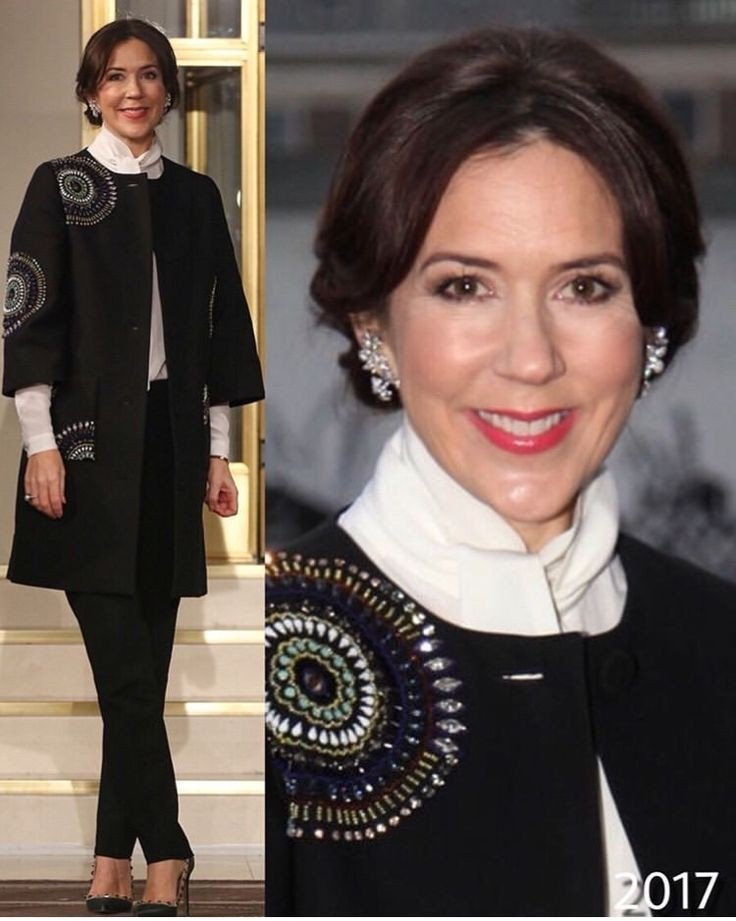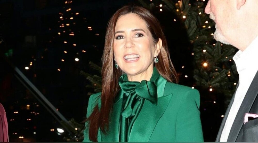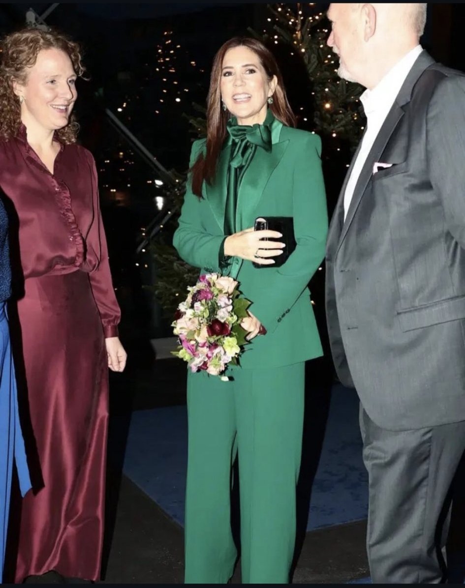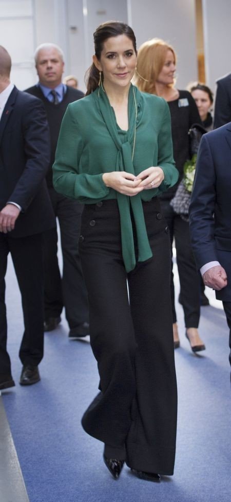 Мери явно се е вдъхновила от панделката на входа на хотела им да върже и нейните връзки на блузата.