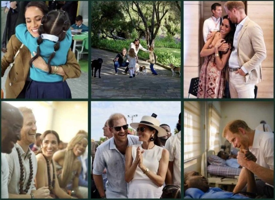 Долу ляво Мегън обича Хари, горе дясно Хари обича Мегън + двамата са щастливи един до друг работейки за каузите си.