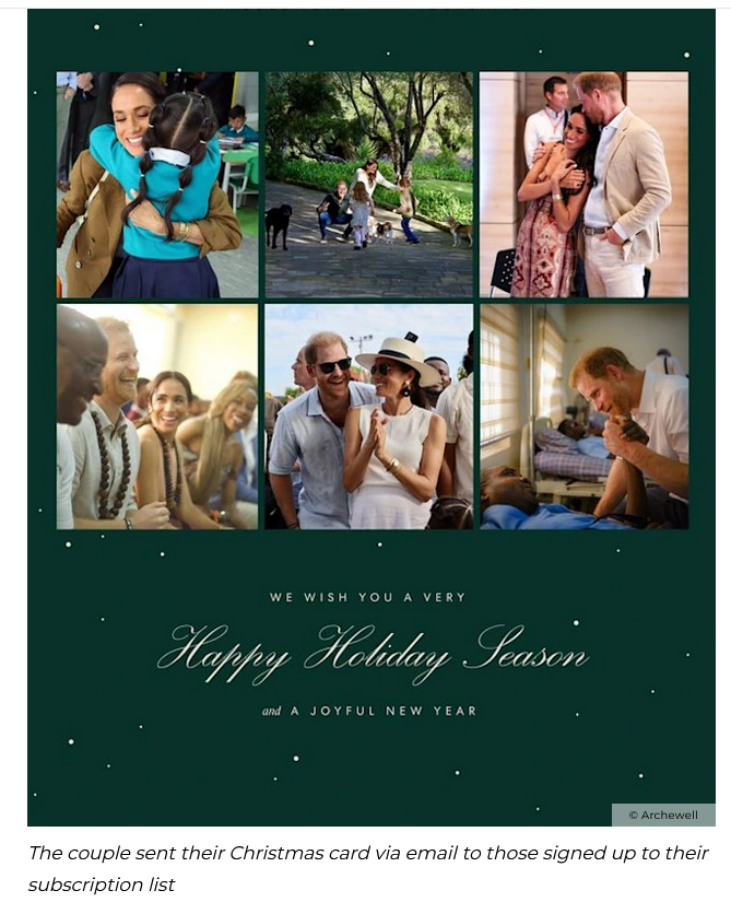 Няма да коментирам снимките, а текста на картичката. “От името на офиса на …..”. Поне не мен това ми звучи странно, все едно не Съсекс, а “офисът” им поздравява за празниците (иначе съвсем политкоректно няма Mary Christmas, а Happy Holiday Season).