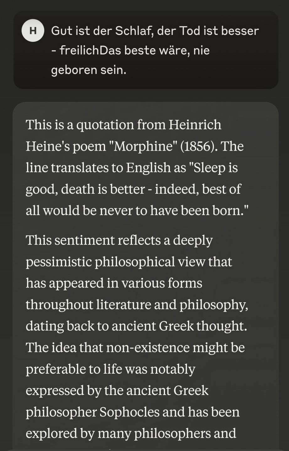 Gut ist der Schlaf, der Tod ist besser - freilich
