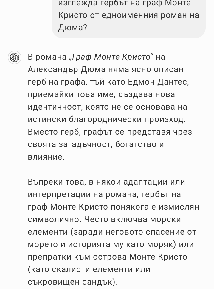 Понеже гледам сериала Граф Монте Кристо, вчера се сетих да го попитам нещо и получих неверен отговор:
