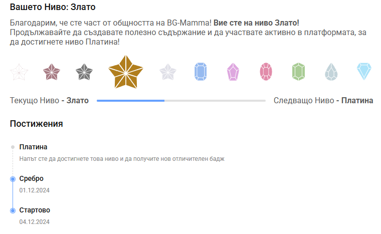 Преди време като става дума пак тук, май при предната кампания беше, го бях погледнала и беше на предното ниво, визуално лентата пак там някъде, та отначало и не обърнах внимание че пише Злато. Нали и в хронологията отдолу последното е среброто. И миналия ден се посмях хубаво, когато и тук писах че незнайно кога и какво е ставало там Grinning