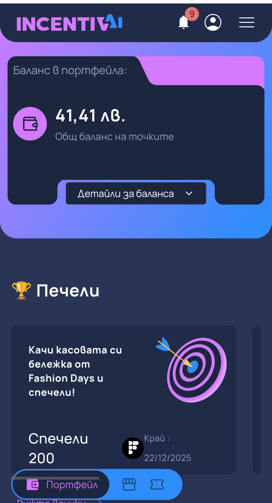 Като цъкна на портфейл ми излиза под него "Печели"