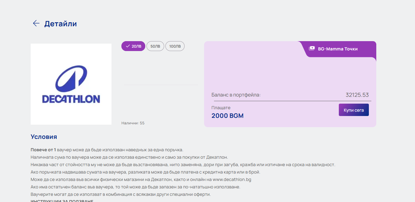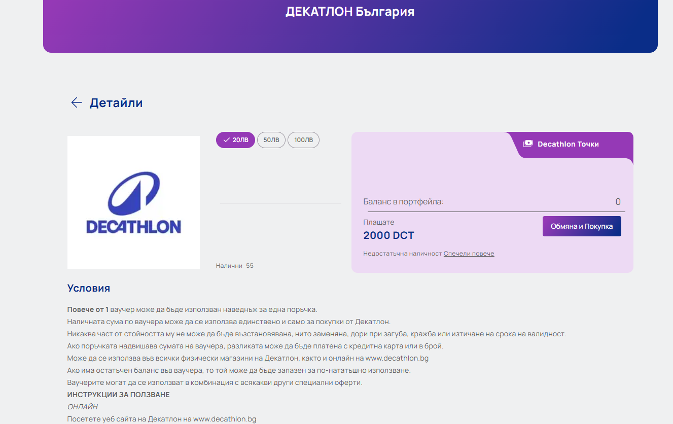 Има ваучери на Декатлон, но трябва да се 'превалутират' точките, за да се купят.