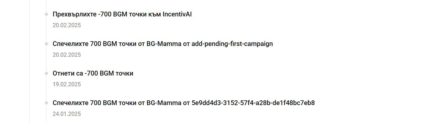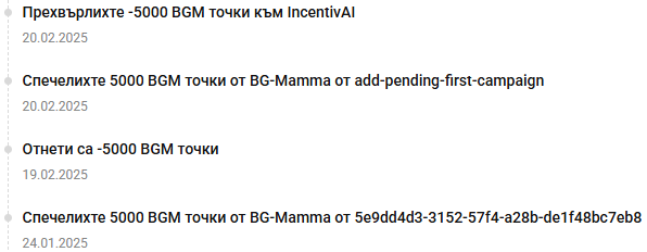 Днес се загледах в историята на точките си и забелязвам ето това - на снимката.