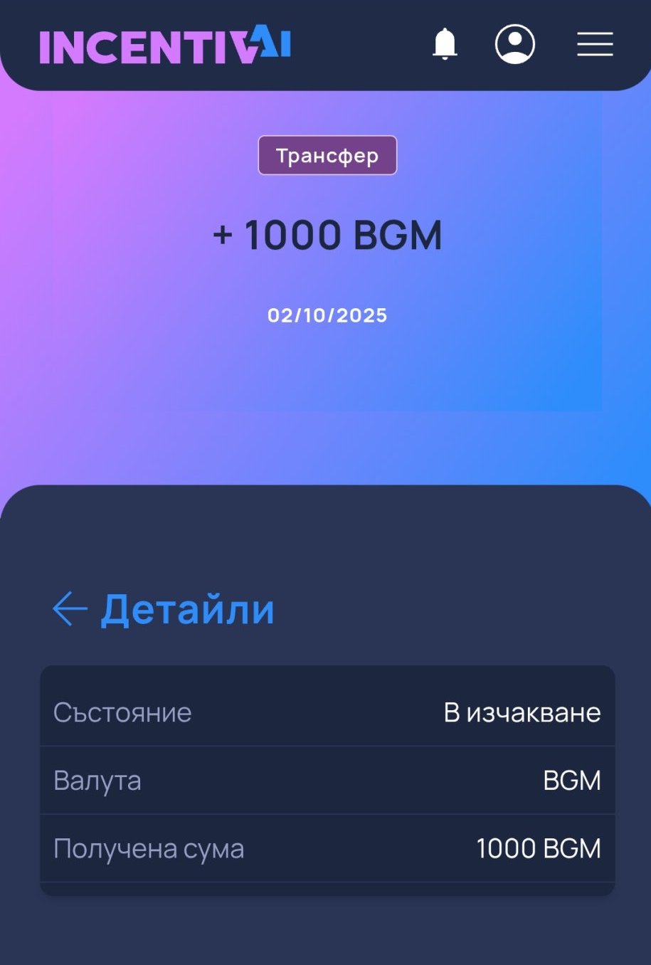 Прехвърлих ги, в мама-та са занулени, в инсентив има известие, че са прехвърлениизвестие, но не се отразяват в портфейла и си седят в изчакване.