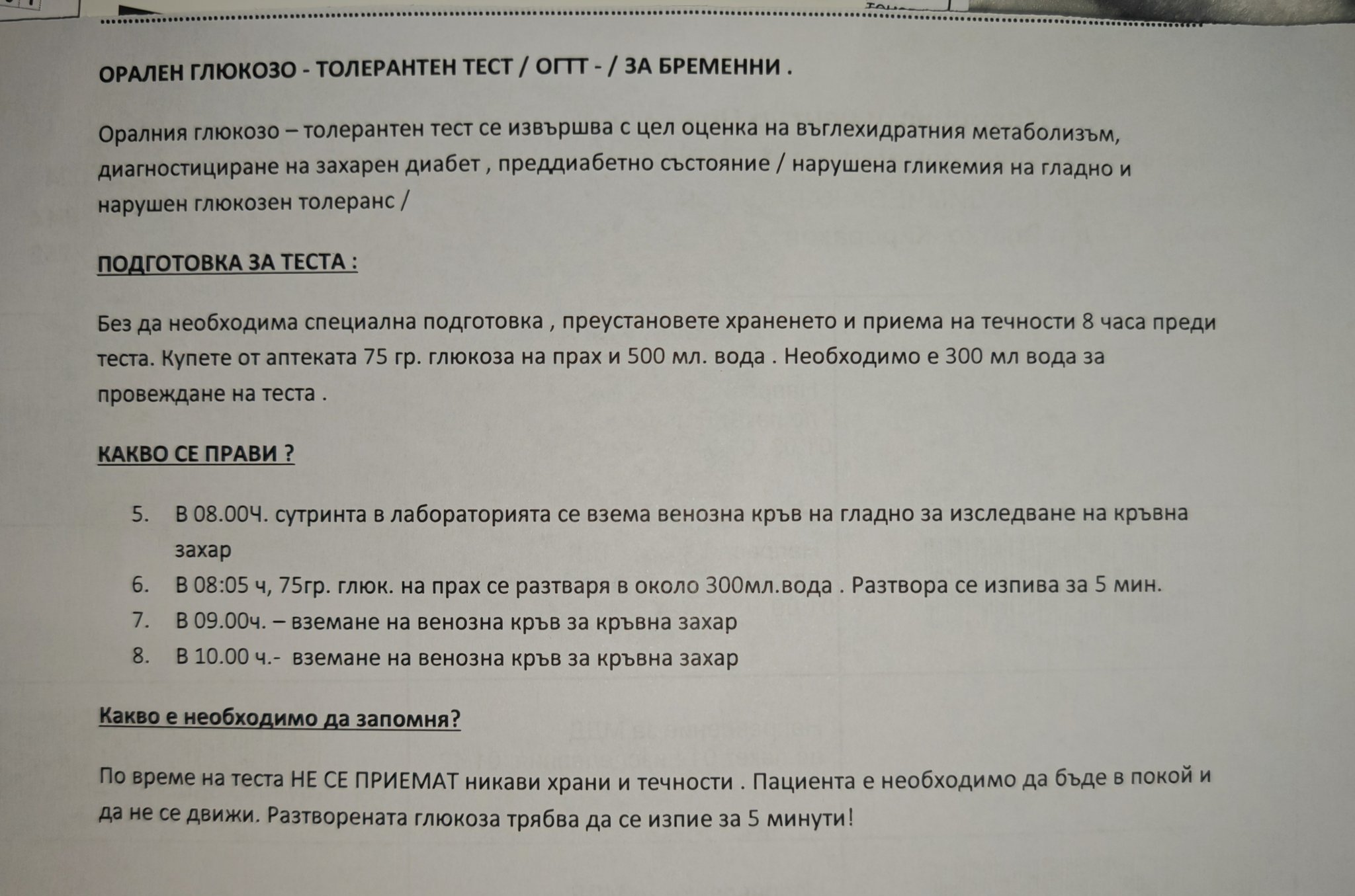 Относно ОГТТ на мен ми казаха, че не е проблем да си пия вода преди теста. Единствено спазих 12 часа (даже бяха 13-14) не бях яла храна, но водичка си пих, че иначе щях да се гътна.😃