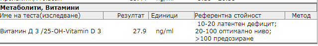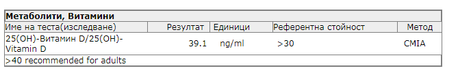 Същевременно средата на декември сама си назначих изследване на вит. Д, защото двама ендокринолози казаха - А, за какво ни е да изследваме вит. Д? А едната дори каза - Че то на всички българи им е нисък тоя витамин и какво, нищо им няма на хората.