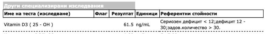 Аз до сега не съм виждала витамин Д без референтни граници от и до.