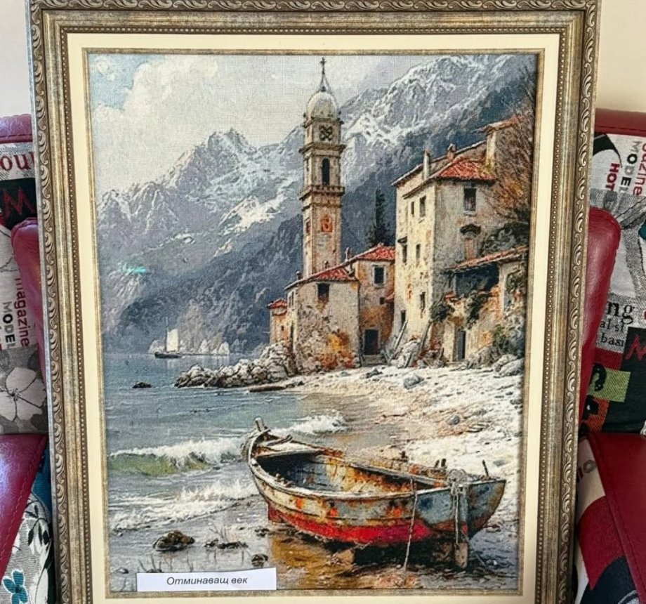 "Целувката" на Г.Климт.Конците са вълнени,не знам дали се продават такива,но лесно могат да се заменят. Пишете ми на лични.