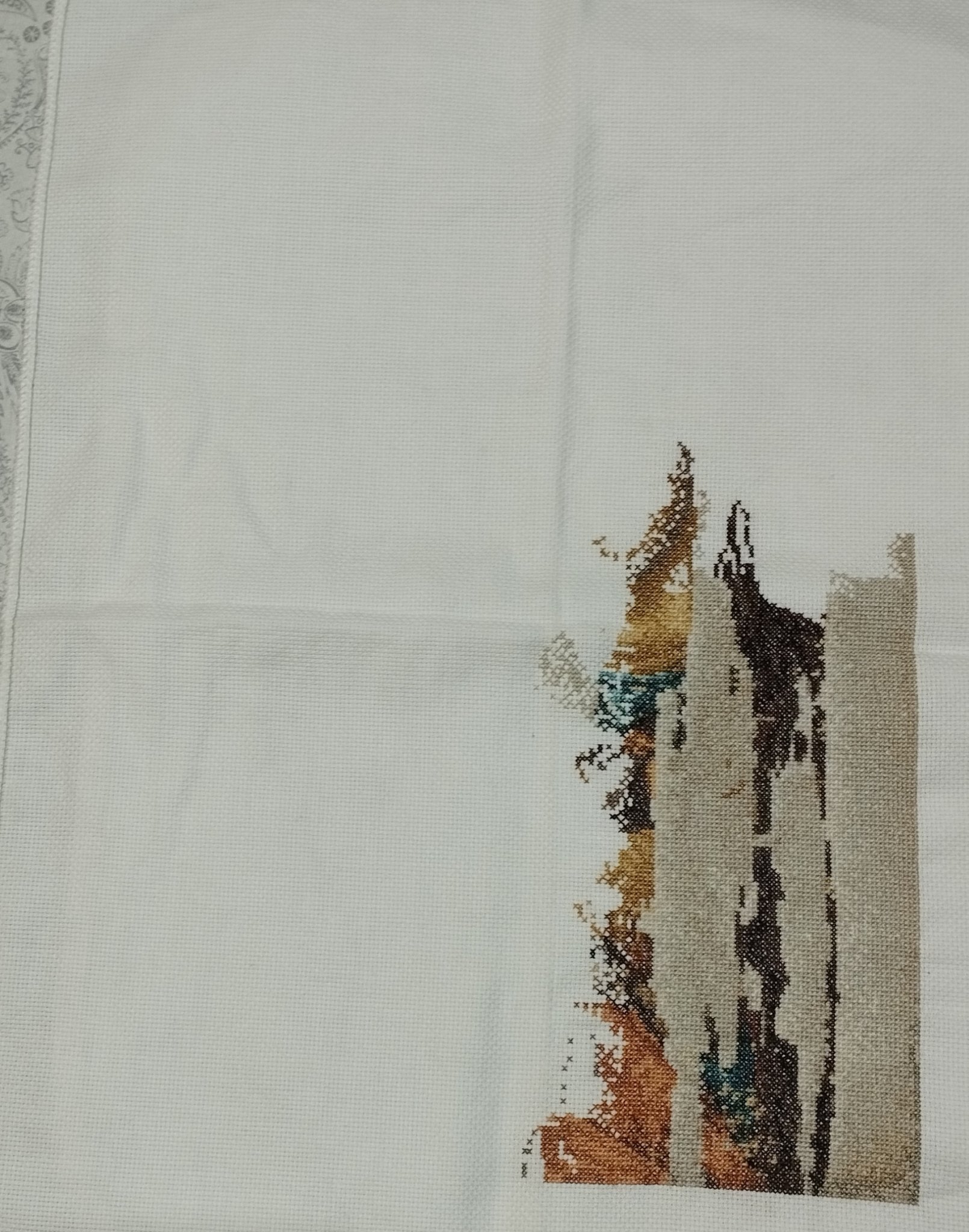 Гоблена е почти ушит, но лицето в оригиналната схема е много розово.