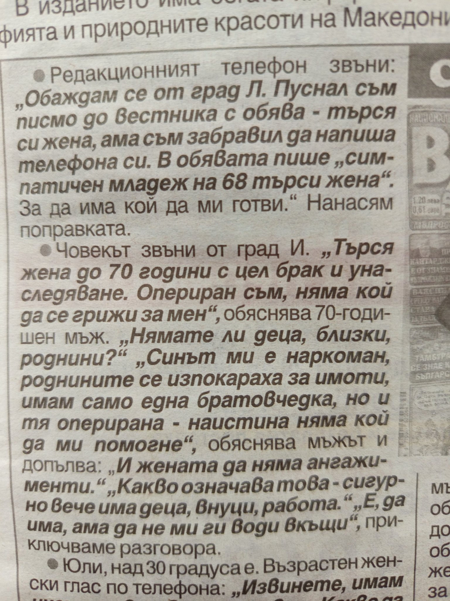 В "Трета възраст" обявите за запознанства са безплатни и ще паснат на натюрела на някои от съфорумците.