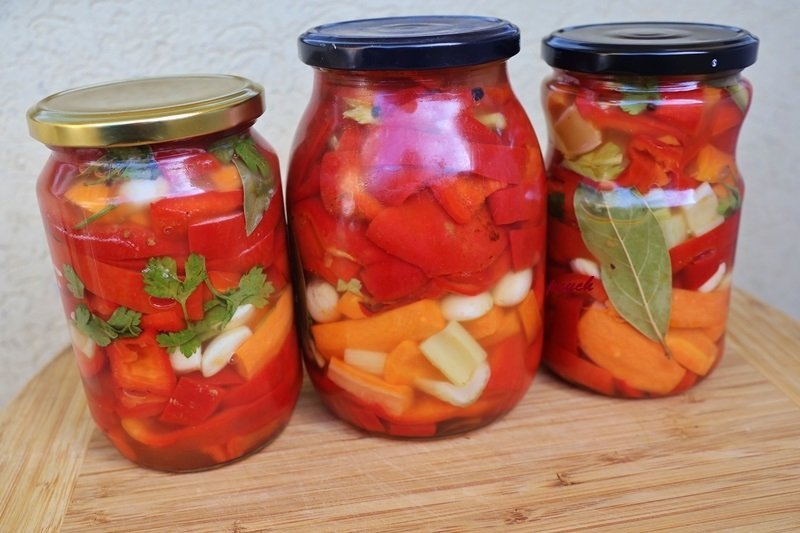 Последните два дни направих туршия от парени, червени чушки, които като станат готови за хапване ще ви снимам. Направих и една гръцка салата с печени, червени чушки с пълнеж от сирене и други съставки, която видях в Ютуб. Миналата седмица бях в Гърция и за да изпробвам рецептата от там си купих зехтин и кремообразен балсамико от смокини. Рецептата е с меласа от нар, но аз я заместих със смокини и се надявам да се получи. Марината ми се стори прекалено кисела и добавих по 1 супена лъжица захар на буркан.