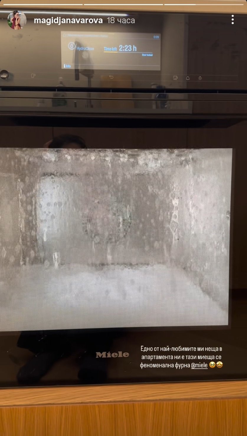 А аз днес за първи път разбрах за миеща се фурна. На Miele, от профила на Маги Джанаварова. Има клип, направих ви скрийшот. Звук като от миялна. Явно нещо ново.