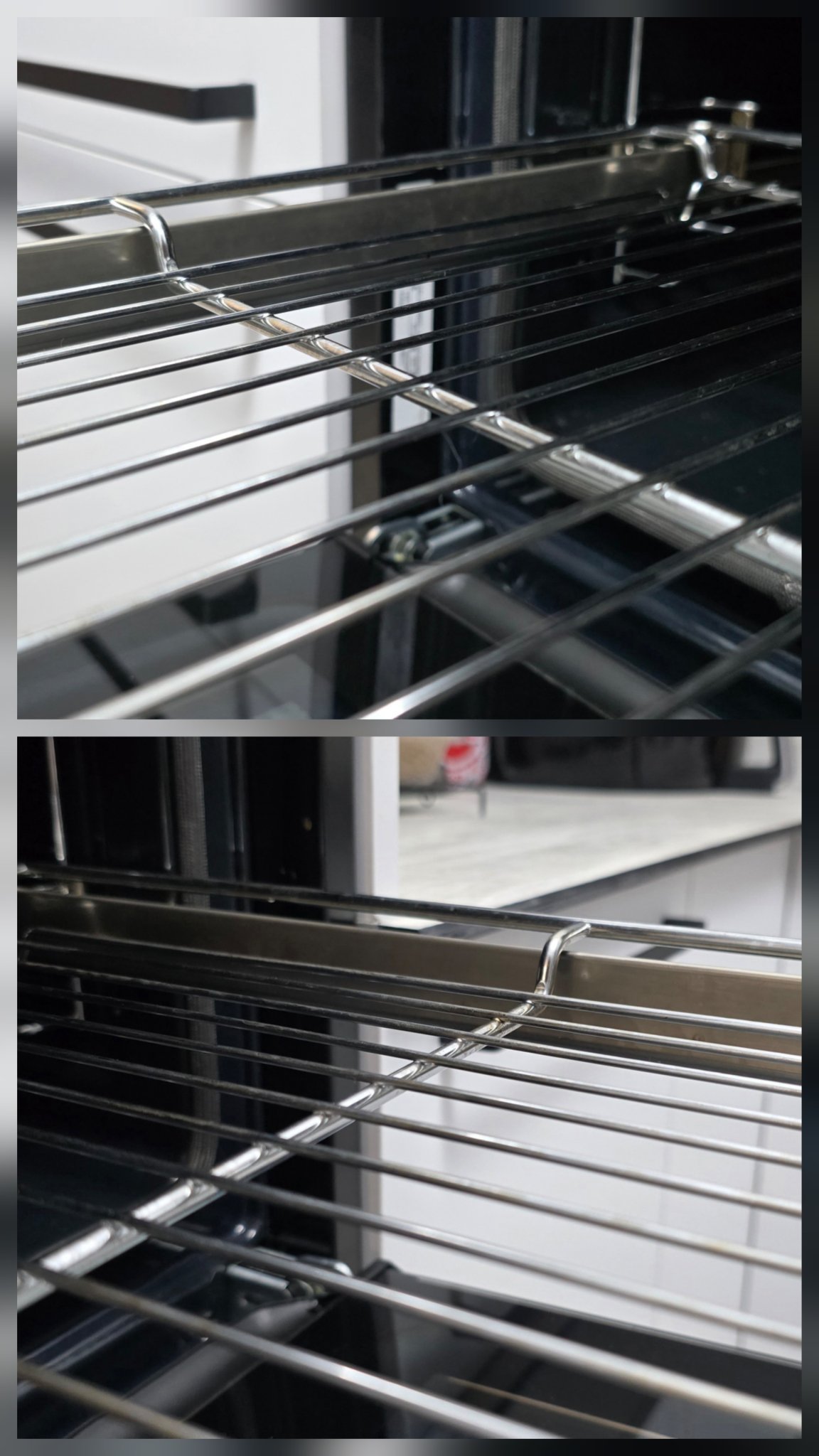 Съжалявам, че не направих снимка преди, но вярвам всички са виждали наслоени петна и мазнини по тези части. След като свърши програмата извадих и минах на места, където имаше останали точки със сухо телче и без никакви препарати! Остатъците паднаха на прах. Цялата гимнастика отне няколко минути. След първото измиване водачите се движат нормално и за момента нямат нужда от смазване.